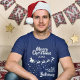 Mostre o quanto você acredita na magia do Natal e Papai Noel com esta camiseta de Natal combinando com a silhueta branca de Papais noeis e suas renas, voando em um rastro de estrelas. A legenda no topo lê Feliz Natal em letras brancas manuscritas. O texto, em uma fonte branca elegante, é facilmente personalizável com seus desejos, ano e nome da família ou nome comercial. Esta camisa faz a roupa perfeita de Natal para jantas e reuniões familiares ou pode ser vestida como um equipamento de Natal para funcionarios de negócios