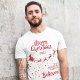 Mostre o quanto você acredita na magia do Natal e do Pai Natal com esta camiseta de Natal combinando com a silhueta de Papais noeis, em vermelho, com suas renas, voando em um rastro de estrelas. A legenda no topo lê Feliz Natal em letra vermelha manuscrita. O texto, numa fonte festiva vermelha elegante, é facilmente personalizável com os vossos desejos, ano, nome da família ou nome comercial. Esta camisa faz a roupa perfeita de Natal para jantas e reuniões familiares ou pode ser vestida como um equipamento de Natal para funcionarios de negócios