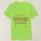 Esta camiseta explode com a alegria da amizade! O texto "Amigos para sempre" é dividido na frente em um espectro vibrante de cores. Cada letra poderia ser uma matiz ousada diferente, ou eles poderiam criar um gradiente de arco-íris lúdico. Imaginem - um "F" amarelo brilhante, um "R" azul legal, um laranja "I" cor de sol, e assim por diante. A design é simples, mas atraente, uma maneira perfeita de celebrar seus laços invioláveis.