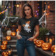 Celebre o Halloween com esta ilustração fantasma adorável, com um fantasma amigável vestindo um chapéu cor de laranja aconchegante, segurando uma abóbora sorridente e um pequeno livro com um rosto de abóbora. Cercado por morcegos, estrelas e faíscas, esta design ao estilo kawaii é perfeita para T-shirts, roupa e presentes de Halloween. Criada em arte vetorial limpa com gradientes lisos e tons pastéis suaves, é profissional, de alta resolução, e flexível para qualquer fundo, fazer-a uma adição encantadora para amantes do Halloween de todas as idades.