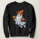 Celebre o Halloween com esta ilustração fantasma adorável, com um fantasma amigável vestindo um chapéu cor de laranja aconchegante, segurando uma abóbora sorridente e um pequeno livro com um rosto de abóbora. Cercado por morcegos, estrelas e faíscas, esta design ao estilo kawaii é perfeita para T-shirts, roupa e presentes de Halloween. Criada em arte vetorial limpa com gradientes lisos e tons pastéis suaves, é profissional, de alta resolução, e flexível para qualquer fundo, fazer-a uma adição encantadora para amantes do Halloween de todas as idades.
