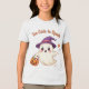 Esta adorável camiseta do Halloween apresenta um fantasma de desenho animado sorridente vestindo um pequeno chapéu de bruxa roxa e segurando um balde de abóbora cheio de doces. Acima do fantasma está a divertida mensagem de Halloween "Muito Bonito para Falar." Perfeito para festas de truque ou tratamento, ou apenas para mostrar o espírito do Halloween, esta camiseta confortável é feita para crianças que adoram diversão assustadora sem os receios. Um design festivo e charmoso que faz um presente sazonal excelente. 🎃 👻