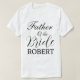 Wedding Father of the Bride shirt features modern black swirling calligraphy script writing with elegant custom first name text that you can personalize. See our coordinating bridal party designs!