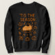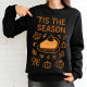 Um doce rabisco de laranja queimado, desenhado à mão, de uma fatia de torta de abóbora, cercado por folhas de maple, arcos e abóboras. Uma camisola confortável de Ação de Graças celebrando a sobremesa de outono favorita de todos. Perfeito para encontros de férias, jantadas de amizade e amantes de assar.