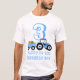 Uma bela ilustração de um caminhão azul que rebocava um vagão cheio de fruta e vegetais. A fruta e os vegetais do trailer incluem melancia, abóbora, batata e milho. Perfeito para rapazes e raparigas que adoram caminhões, maquinaria pesada, agricultura ou simplesmente adoram brincar com caminhões de brinquedos. A camisa de aniversário ideal simplesmente personaliza o texto e faz dele seu. A decoração de festa de aniversário correspondente e os favores podem ser vistos nesta coleção de designs.