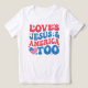 Uma declaração ousada de fé e patriotismo, esta design apresenta uma vibrante letra retrorreflectora que orgulhosamente diz, "O JESUS E AMÉRICA DO AMOR TAMBÉM." A mistura lúdica de estrelas vermelhas, azuis e brancas evoca o espírito da bandeira americana, enquanto o emblema em forma de coração no fundo reforça ainda mais a unidade da fé e do orgulho nacional. Quer comemorando o Dia da Independência, expressando devoção, ou simplesmente vestindo seus valores com confiança, esta imagem combina sem interrupção a crença sincera com o talento patriótico. Perfeito para quem quer que tenha fé e amor por um país próximo ao seu coração!