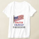 Patriotas unam-se! Vocês amam a sua bandeira, vocês amam a sua fé, família e liberdade. Adquira este design com a bandeira dos Estados Unidos da América e a frase "Fé Família Liberdade". Ótimo para as celebrações do Dia da Independência de 4 de julho. Estilo levemente desgastado/"grunge".