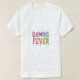 O design de camiseta atraente apresenta o texto "Febre de jogos" em um gradiente multicolorido vibrante. Cada letra se rompe com um tom diferente, criando um efeito dinâmico e atraente. Este design é perfeito para os jogadores que adoram estilos ousados e coloridos.