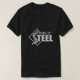 A camisa da escoliose com coluna diz: Feito de aço. Camisa de escoliose perfeita para pessoas que têm uma espinha quebrada e que fizeram muitas cirurgias na coluna.