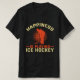 A camiseta de hóquei com um jogador de hóquei da silhueta lê Felicidade está jogando hóquei no gelo!