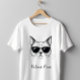 Design lúgubre com um gato relaxado e o punny texto 'Feline Fine' perfeito para amantes de gatos com senso de humor.