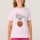 Parabéns de Basquete Feliz Camisa De Aniversário. Uma camiseta moderna personalizada de celebração esportiva com uma bola de basquete, nome e idade. Você pode mudar qualquer texto na camiseta.