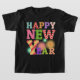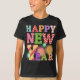 Um design de texto engraçado e colorido diz um feliz ano novo. Perfeito para uma comemoração de Ano Novo ou festa de Ano Novo.