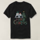 Design de camiseta de Natal festiva, com dois bonitos bonitinhos de neve, uma árvore de Natal decorada com uma estrela no topo, colorida texto "Feliz Natal", e flocos de neve