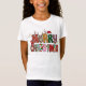 Camiseta gráfica festiva de Natal com tipografia moderna com o ditado "Feliz Natal"
