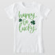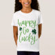 Camiseta Feliz Desenho de Texto Verde com Trevos de Quatro
