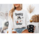 Mantenha-se confortável neste outono com a camisola Spooky Mama, apresentando um fantasma doce, um gato preto amigável, abóboras, e uma aranha pendurada no estilo lúdico de Halloween. Adicione o seu nome para torná-lo verdadeiramente seu! Ideal para noites frias de truque ou tratamento, hayrides ou dias de queda casual.
