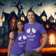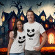 Rosto assustador que é diferente na frente e atrás. Você pode personalizar a mensagem ou deixar o vazio para não ter nenhuma mensagem. Torne-o um chá da família Spooky para todos na família do Halloween. Procure na nossa loja os tamanhos das crianças.