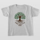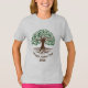 Design Happy Arbor Day. Árvore com folhas verdes, tronco castanho, raízes marrons e, combinando em cor o slogan: Feliz Dia da Árvore