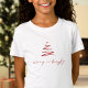 Um design simples e elegante, grande para abraçar o espírito natalício em estilo. Fonte de caligrafia com as palavras "feliz e brilhante" em vermelho com uma linha desenhada na árvore de Natal.
