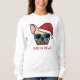 Celebre a estação festiva com seu próprio Papai noel patina um moletom de buldogue francês! Esta camisa engraçada de biscoito francês de buldogue é certamente o ponto de discussão em qualquer festa de Natal. O design apresenta um bonito e belo moinho francês, vestido de Papai noel, com o texto "Papais noeis patas" impresso por baixo. Este design também está disponível com diferentes Bulls franceses de cor diferente.