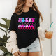A feliz e Grávida Groovy Moderna Camisa de Natal T-shirts apresenta o texto festivo colorido "Feliz e grávida" na tipografia roxa e rosa moderna, acentuado com estrelas e um quadro de esfregaço. Perfeito para o Natal e feriados. Criado por feriados Evco www.zazzle.com/store/evcoholidays