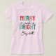 Feliz e Brilho! Camisa festiva de férias com tons de rosa e verde.