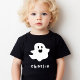 t-shirt divertida do Dia das Bruxas para crianças com um fantasma branco feliz e um nome personalizado por baixo.