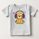 Camiseta Feliz filhote sorridente com fones de ouvido.
