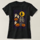 Esta ilustração divertida de Halloween reúne todos os clássicos ícones assustadores em uma composição alegre e vibrante. Três fantasmas brancos expressivos pairam por um céu noturno roxo profundo, acompanhados por abóboras laranjas esculpidas que brilham com personalidade. Dois esqueletos simpáticos ficam lado a lado, adicionando um toque de humor à cena, enquanto morcegos pretos voam acima em movimento animado. Um grupo de lápides ancora a parte inferior, e uma grande lua cheia amarela surge por trás deles – completa com uma bruxa voando pela sua superfície em sua vassoura.