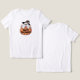 Feliz Cafeína do Halloween Ghost, Camisa Tripla. Um fantasma numa abóbora, um chapéu de bruxa inclinado, tomando café como se fosse combustível de outubro. Boo? Não, breu! Raios, acenando com um alô de abóbora: Feliz Halloween, seu feijão assustador!