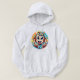 Um animado macaco-desenho com olhos expressivos grandes pisca os sinais de paz enquanto veste óculos estrelados e um cachecol colorido. O fundo vibrante apresenta uma explosão de estrelas e listras multicoloridas, melhorando a vibração lúdica.