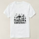 A imagem mostra um desenho preto e branco com elementos relacionados ao Natal. No topo, Papai Noel está dirigindo um trenó carregado de presentes puxados por duas renas. Os flocos de neve estão espalhados pelo trenó. No fundo, há pinheiros e presentes enrolados. Na parte inferior da imagem, as palavras "MERRY CHRISTMAS" são escritas em letras grandes. Ao lado do texto, há um desenho de dois gatos, um deles vestindo gravata. A imagem expressa a atmosfera de Natal e celebração.