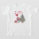 Esta camisa de Natal das meninas brancas tem uma adorável garotinha vestindo um chapéu de estoque vermelho e branco com pompom e segurando-se em um presente. Ao lado dela está uma pilha de presentes. Uma bela árvore de Natal fica ao seu lado e é decorada com corações, doces e sinos. Diz Feliz Natal no topo e há três corações acima dela mostrando seu amor pelo Natal. Esta é uma das camisas favoritas da sua filha para vestir esta temporada de férias!