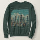 Camisola alegre de Natal com o horizonte de Chicago e texto personalizado. Excelente para aqueles que vivem em Chicago e querem roupas mostrando a cidade. O horizonte de Chicago está na parte de trás da camisola. A frente apresenta uma tipografia simples. Custom Text. Use a modelo para criar sua camisa de Natal de Chicago. Mantenha o texto mostrado ou mude para seu nome ou frase desejado.