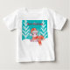 Tee de Natal do bebê com um bebê Hippo sentado na neve vestindo um chapéu e cachecol de Papai Noel. Há também pinheiros brancos na cena e um céu nevado turquesa. Obrigados para Creative Favrica para alguns dos elementos na design.
