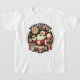 esta design é uma ilustração alegre e festiva de Papai Noel segurando um doce colorido e algodão. Ele está rodeado por uma série de doces e presentes de temas natalinos, com as palavras "Feliz Natal" arqueadas sobre ele em letras ousadas, ao estilo da safra. A cena é enquadrada por decorações festivas, incluindo folhas sagradas, bagas e galhos de pínus, criando uma atmosfera alegre de férias. Papais noeis está vestidos com seu traje vermelho clássico com uma barba branca esvoaçada e uma expressão alegre, capturando o espírito da época de Natal com um encanto nostálgico e lúgubre. As cores brilhantes e o estilo de arte de vintage dão à imagem uma sensação quente e retrógrada, perfeita para espalhar alegria de férias.