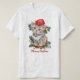 A design da camiseta apresenta um gatinho encantador e fofo no centro. O gatinho é retratado com olhos largos e inocentes e um nariz rosado minúsculo, seu pelo é uma mistura de cinzas brancas e suaves. Está vestindo um chapéu de Natal vermelho festivo, tradicional, fazer que o gatinho pareça ainda mais carinhoso. Ao fundo, galhos de Natal lindamente decorados moldam o gatinho. As ramificações são verdes e esbranquiçadas, enfeitadas com luzes cintilantes em cores quentes, borbulhas vermelhas e douradas, e borrifadas com um toque de neve branca e imitadora. Os galhos se estendem em direção às bordas da t-shirt, criando um quadro semicírculo ao redor do gatinho. O esquema geral de cores são as cores tradicionais do Natal - vermelho, verde, branco e ouro, com um toque de bege mole do gatinho. O design é uma mistura perfeita de adoráveis e festivos, fazer um visto excelente para a temporada de férias.