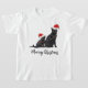 Camiseta Feliz Natal Negro Gato Santa Hat