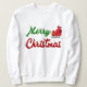 Docinho com Feliz Natal em texto verde e vermelho 3D e trenó de Papai noel. Sweatshirt disponível em várias cores.