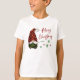 Camiseta natalícia, de estilo russo, de rapazes, com "Feliz Natal" e o ano em um roteiro festivo de caligrafia vermelha e verde. Este design de diversão apresenta um gnomo em uma roupa vermelha e verde de feriado com um padrão de floco de neve dourado. Perfeito para o feriado.