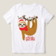 Esta design apresenta uma preguiça festiva pendurada num galho com o texto moderno "Feliz Natal", a popular tipografia vermelha. #natal #feriados #festivo #preguiça #animais #bonitinho #sazonal #moda