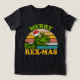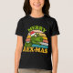Feliz Natal Rex-mas A camiseta do Dinossauro Cute Dino Boys apresenta um retrô chamado pôr do sol com um T-rex vestindo um chapéu de Santa e o texto "Feliz Rex-Mas" na tipografia moderna. Projetado por feriados do Evco www.zazzle.com/store/evcoholidays