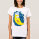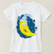 Um rosto amarelo feliz vestindo um chapéu azul e branco. Esta design parece muito eficaz nesta Camiseta das Mulheres