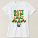 O texto verde e laranja estilizado nesta camisa diz "FELIZ VÁ SORTE". Abaixo do texto está um gnomo bonito com balões coloridos de shamrock em cada lado. Perfeito para Dia de São Patrício, ou para mostrar seu lado irlandês o ano todo.