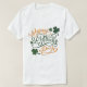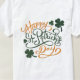 "Feliz Rua. O texto do Dia de Patrick em uma fonte decorativa, com cores verdes e laranja. A design inclui símbolos de vergonha, com estilo lúdico e festivo. O fundo é simples, enfatizando o texto e os gráficos.