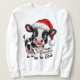 Esta camisola branca apresenta um lindo filhote de desenho animado vestindo um chapéu vermelho de Papai Noel com uma pompom e uma pompom brancos. O vitelo é preto e branco com nariz rosa e olhos grandes e expressivos. À direita do vitelo, o texto "Felizes feriados da VACA" é impresso a preto. O design geral é festivo e alegre para a época de férias.
