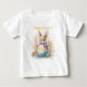 Um saco de camiseta bebê Felz pascoa, bonito, com um coelho doce e ovos coloridos de páscoa, flores e folhagem. O título pode ser alterado para um nome, se necessário