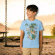 Esta é uma camiseta personalizada fofa para um jovem rapaz para um feriado Felz pascoa com um coelho da Páscoa com galinhas, cenoura, árvore e flores. Todo o texto é personalizável, você pode atualizar facilmente o nome ou transferir o design para uma camiseta diferente, esta aqui vai melhor com uma camiseta azul-clara.