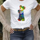 Artistic watercolor-style illustration of a female basketball player holding a ball over her shoulder. The vivid, abstract color splashes and dynamic silhouette create a modern and energetic look, ideal for sports-themed T-shirts and athletic apparel.